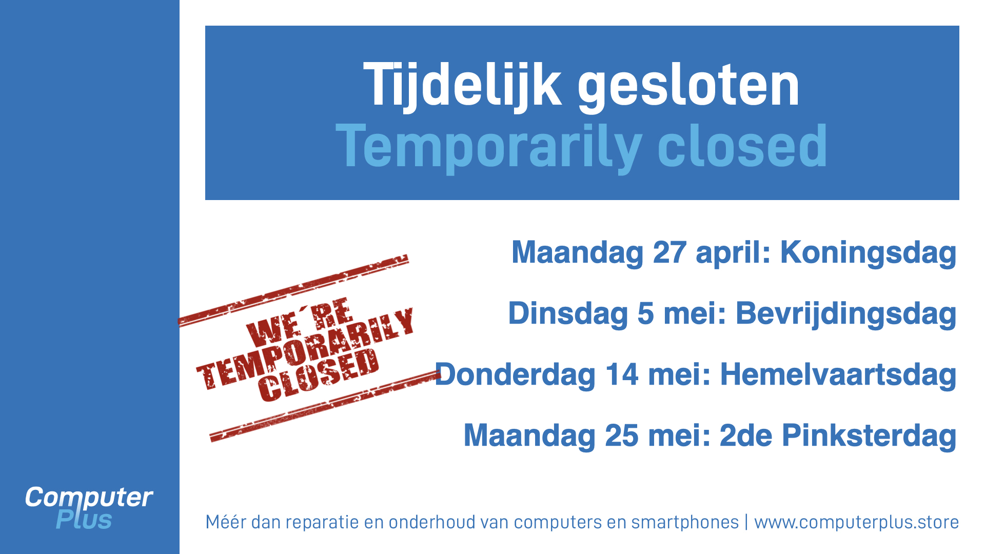 Check hier eventuele afwijkende openingstijden ivm feestdagen en vakanties